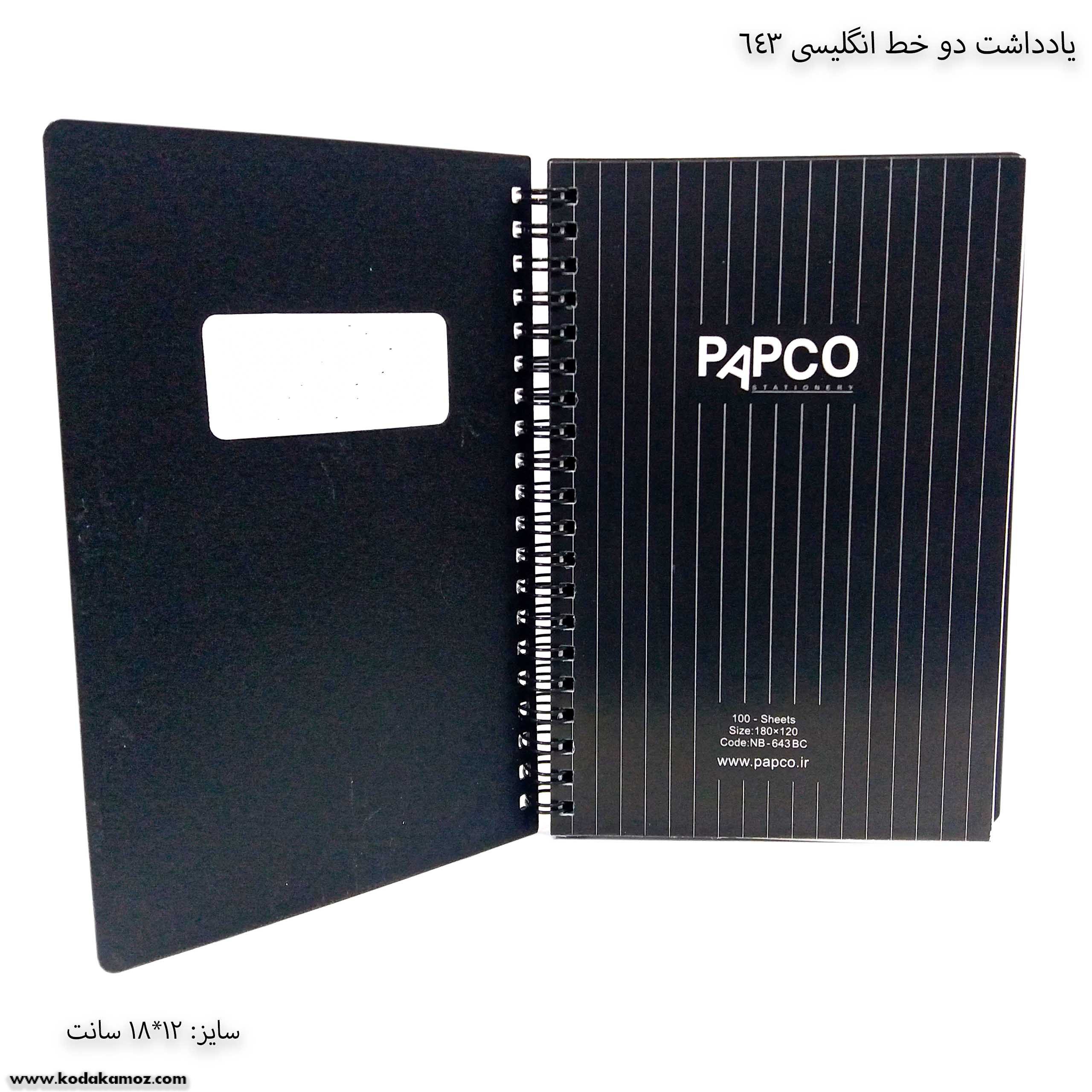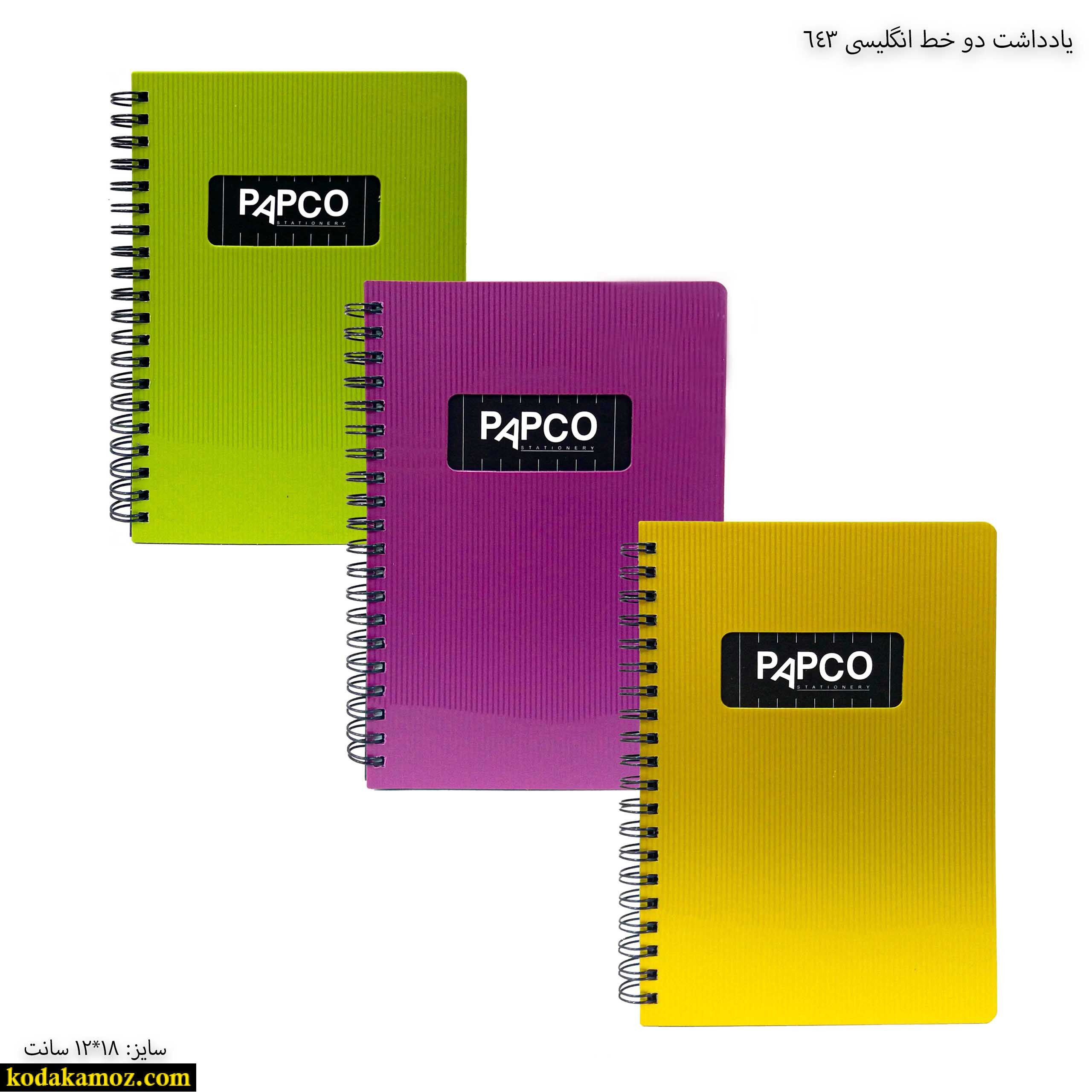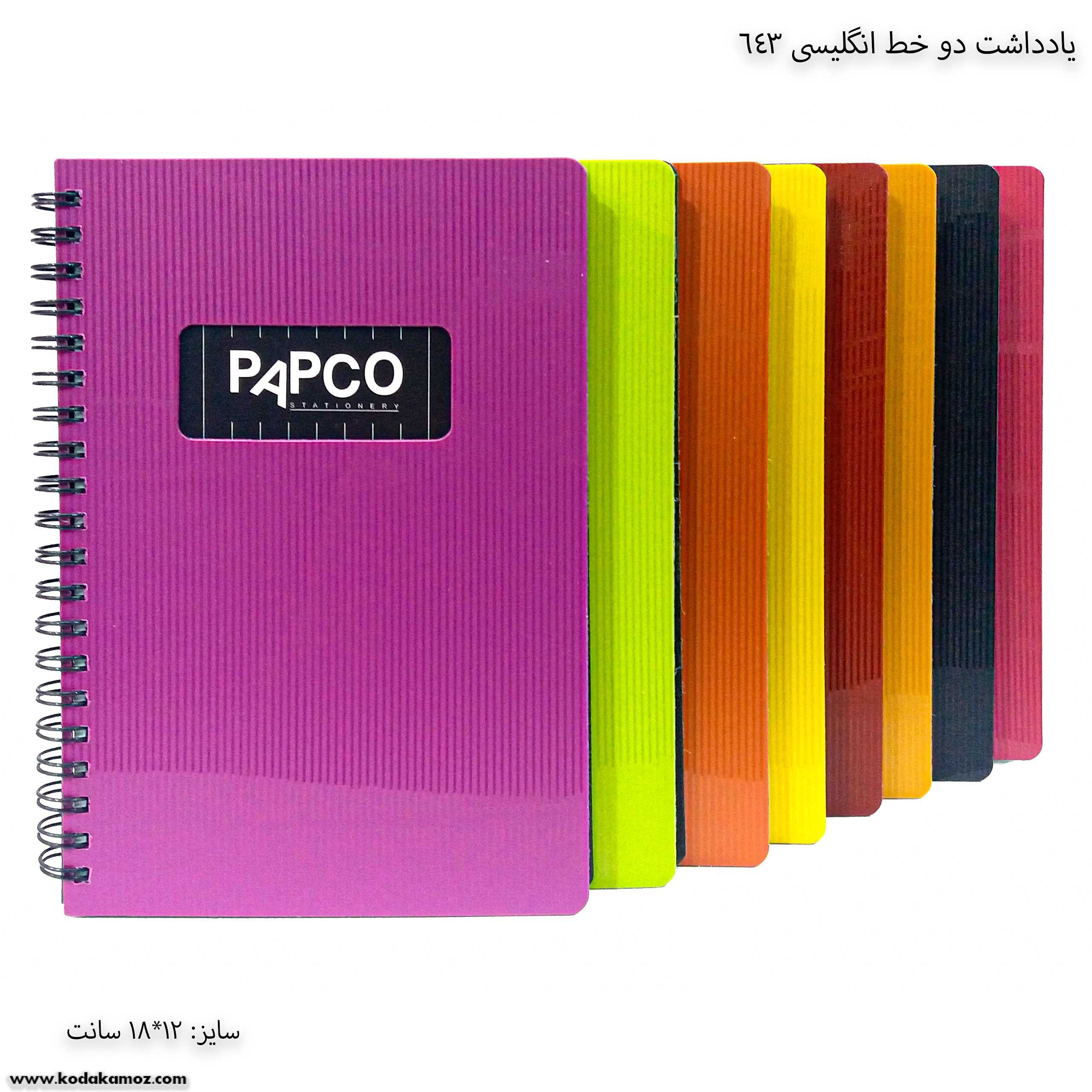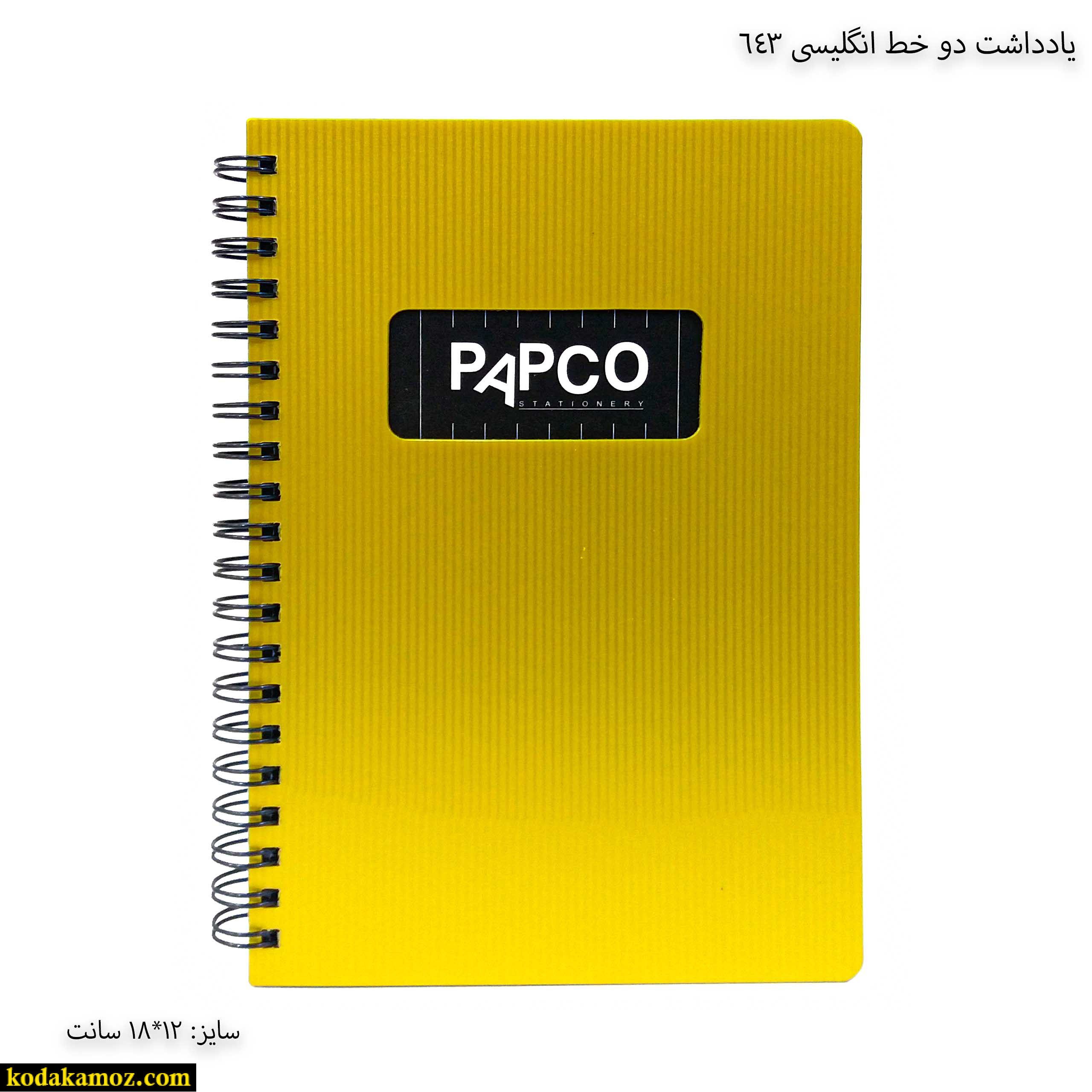 یادداشت دو خط انگلیسی 643 پاپکو یک دفتر و نوشت افزار مناسب برای استفاده دانش آموزان و دانش جویان است.