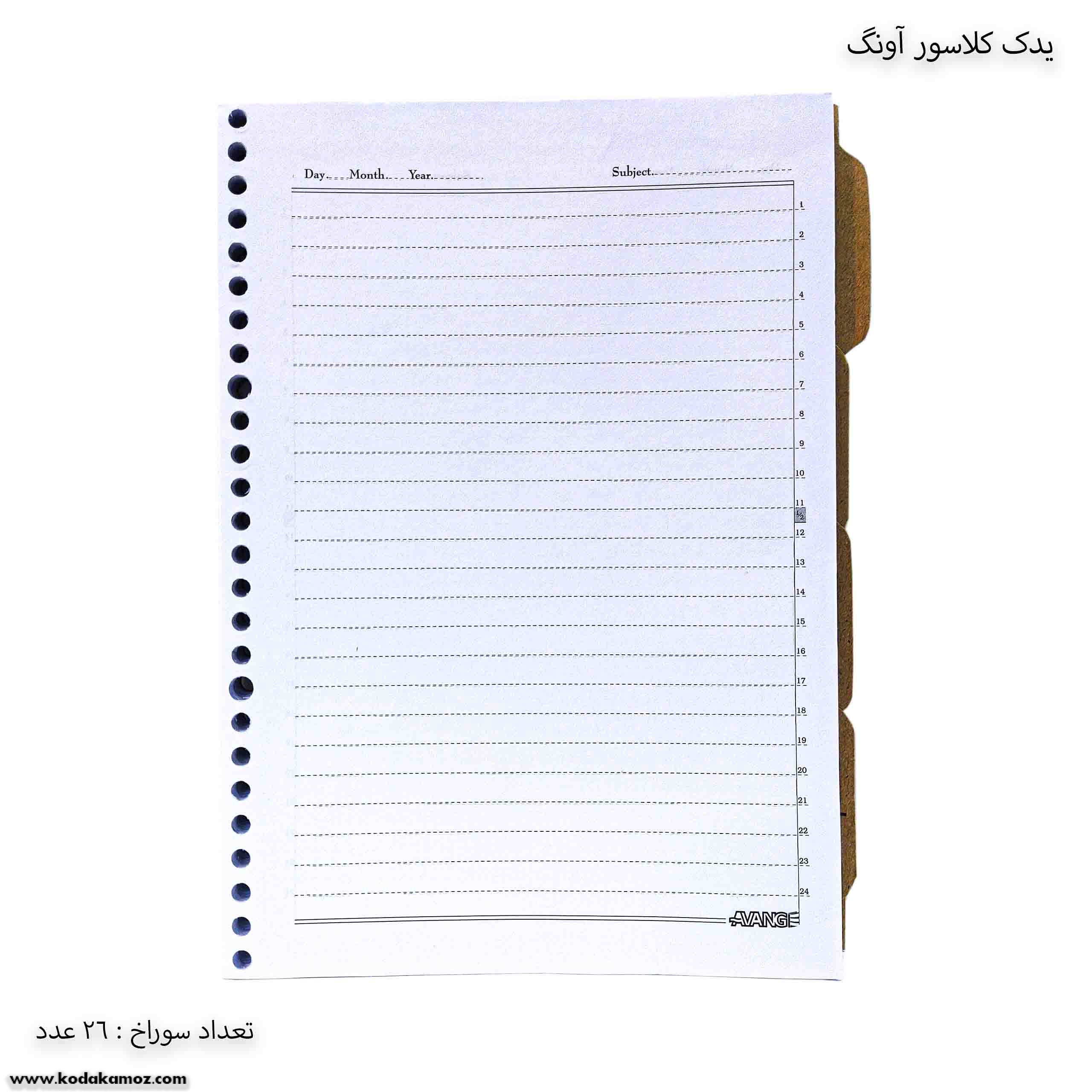 مشخصات یدک کلاسور 26 سوراخه آونگ